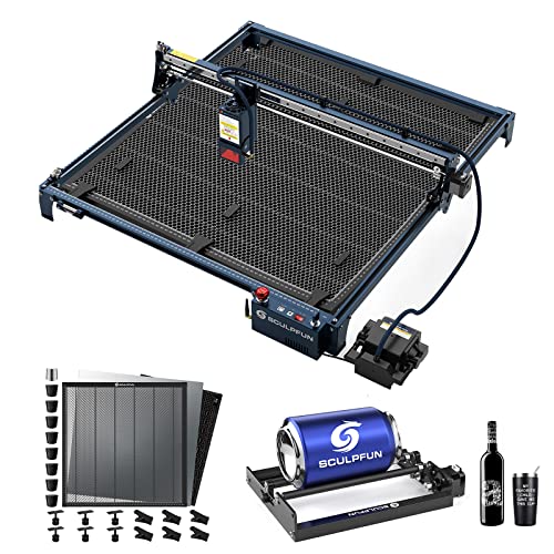 SCULPFUN Macchina per incisione laser S30 Ultra 33 W con tavolo da lavoro laser Honeycomb da 600 x 600 mm, rullo di rotazione laser, 600 x 600 mm, area di lavoro, 42 bit per modello grande