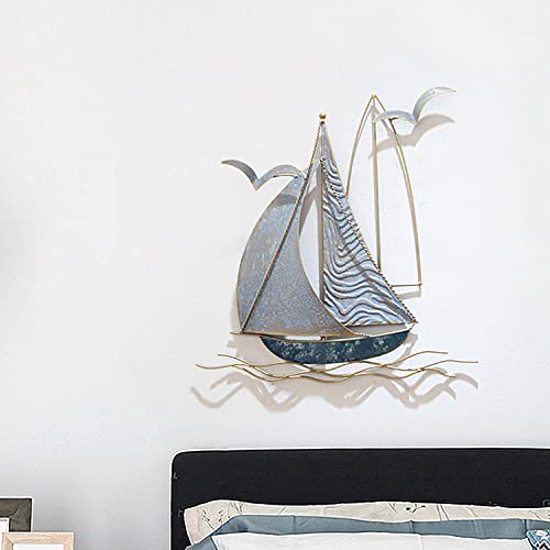 Sculture a parete decorative Arte della parete della barca a vela in metallo, scultura da parete rustica della nave nautica, decorazione della parete della barca a vela nautica in stile mediterraneo f