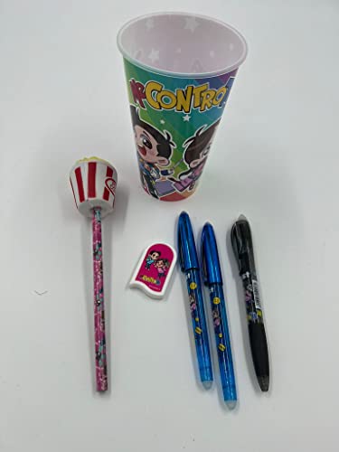 SET SCUOLA ACCESSORI ME CONTRO TE LUI' SOFI' bicchiere in plastica + matita squishy + penna ghost + 3 penne ghost colori casuali me contro te