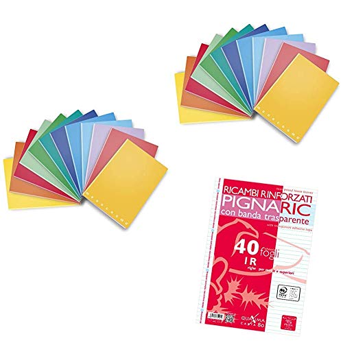 Kit Scuola Pigna - 10 Quaderni A4 a Quadretti 5mm + 10 Quaderni A4 a righe 1R + 2 Confezioni di Fogli ad Anelli con Banda Rinforzata a Righe 1R (40 Fogli ciascuna) - Kit per Scuola Media e Superiore