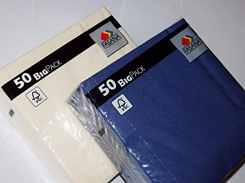 50 x blu scuro (blu royale) + 50 x beige chiaro - crema - (burro cream) = 100 tovaglioli in combinazione, tovaglioli di carta, 33 x 33 cm, 3 strati, piegatura 1/4