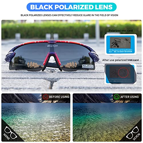 SCVCN Polarizzata Occhiali da Sportivi Ciclismo con 3 Lenti Intercambiabil Uomini Donne Corsa Pallavolo Tennis Guida Pesca Softball Alpinismo Golf Escursionismo Ad Alto Contrasto HD 52