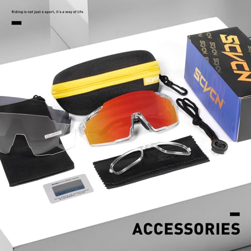 SCVCN Polarizzati Occhiali Da Ciclismo Con 3 Lenti Intercambiabili TR90 Sport Occhiali Da Sole Uomo Donna Corsa MTB Bicicletta Running Mountain Bike Occhiali