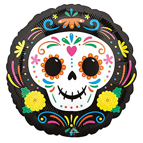 Palloncino rotondo con teschio di zucchero del giorno dei morti.