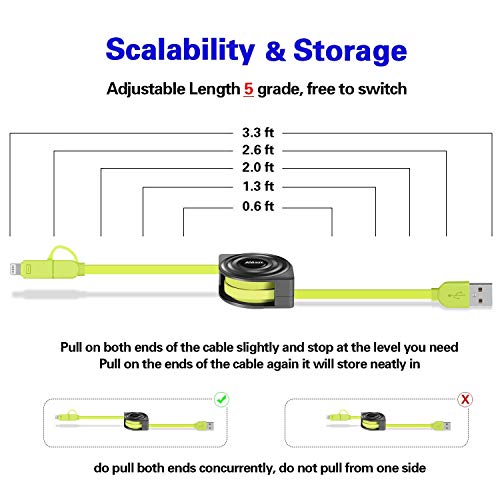 SDBAUX Cavo di Ricarica USB Retrattile, Cavo Micro USB 2 in 1 e Dati di Sincronizzazione, Compatibile iPad iPod Phone XS Max XR X 8 7 6 Plus 5S,Samsung Galaxy Note S6 S7 Edge 5 LG G4 HTC V10 (1M)