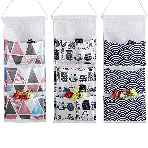 SDFAA, 3 Pezzi Borsa da Parete, Borsa Portaoggetti, Borsa da Appendere in Lino Cotone, Tasca da Appendere in Cotone e Lino Impermeabile in Stile Minimalista, per Camera Letto, Bagno (3 Modelli)