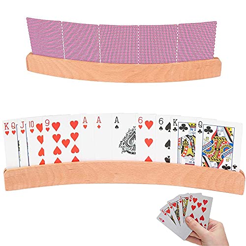 SDFAA 2 Pezzi Porta Carte da Gioco, Supporto in Legno per Carte da Gioco, Reggi Carte, Porta Carte da Gioco Panorama in Legno, Porta Carte da Gioco dal Design Curvo, per Bambini, Anziani, Adulti