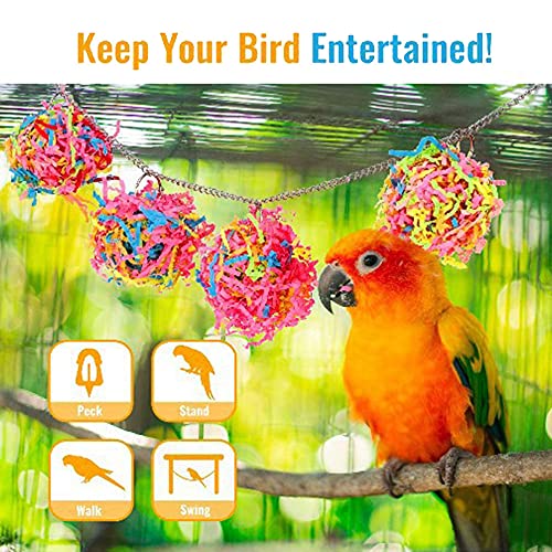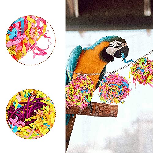 ❤ FACILE DA INSTALLARE: Basta collegare la catena di metallo su entrambi i lati della gabbia per uccelli e allacciare cinque palline colorate di carta sminuzzata per completare questo pratico e squisito giocattolo per uccelli.