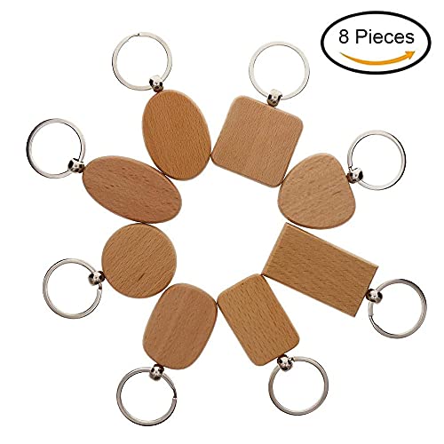 SDFF Portachiavi in Legno Personalizzato, 8 Pezzi Portachiavi in Legno Personalizzato Fai-Da-Te, Portachiavi in Legno Vuoto, Portachiavi con Etichette in Legno, per Decorazioni Fai Da Te Regali