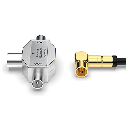 Sdoppiatore antenna 2 scomparti - Sdoppiatore d'antenna duplicatore - Sdoppiatore TV Adattatore a T a 2 vie Antenna TV 1x ingresso presa coassiale IEC (accoppiamento) W 2X uscita spina coassiale