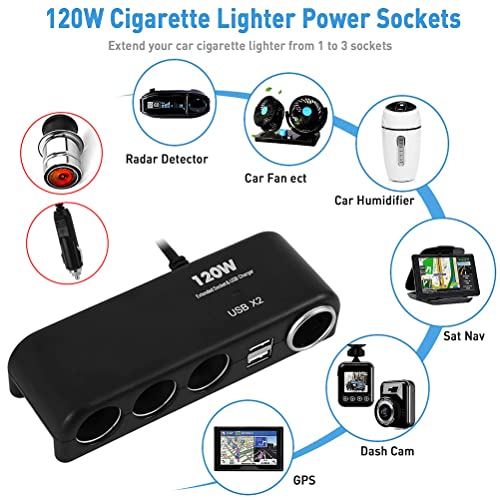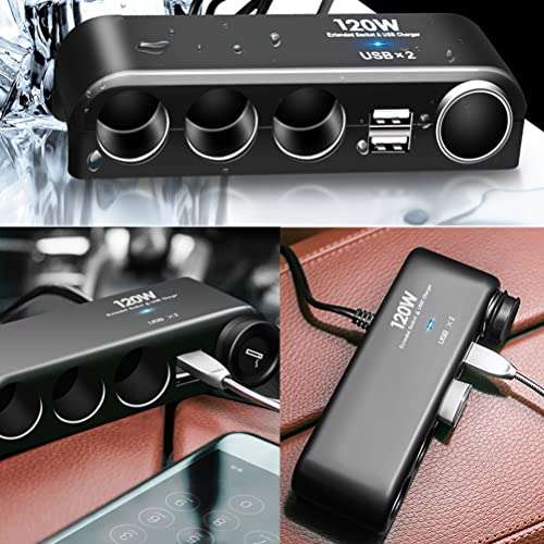 Sdoppiatore Presa Accendisigari per Auto,12V/24V Ricarica Rapida Auto USB Splitter Accendisigari, 120W Caricabatteria Auto 2 Porte USB & 3 Prese, per GPS, Dash Cam, Cellulare