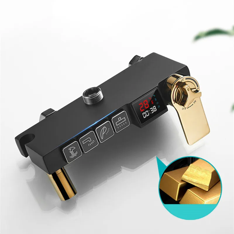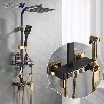SDSN Thermostatic Shower Set Four Function Bathtub Mixer Tap Thermostatic Bathroom Faucet Black Gold Digital Shower Mixer Set