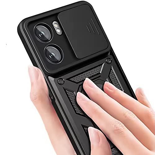 SDTEK Custodia Compatible con Oppo A57 / A77, Cover Obiettivo Fotocamera, Supporto, Anello Magnetico Protezione Schermo Vetro (Nero)