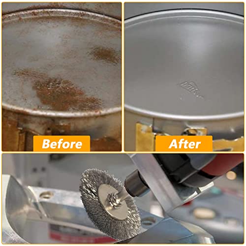 Ampia gamma di applicazioni: il set di spazzole metalliche è adatto per il trattamento superficiale di legno, pietra e metallo. Può essere utilizzato per levigare, lucidare, spolverare, sbavare, pulire e rimuovere residui ecc. Con questo strumento per levigatrici è possibile lavorare durante la lucidatura di pavimenti, pietre, gioielli, ecc. Migliorare.