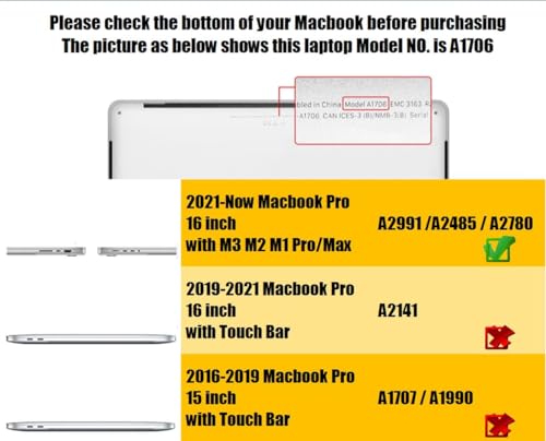 Non compatibile con MacBook altri modelli, come MacBook Pro 16" modello A2141 2019/2020/2021 versione precedente. Si prega di controllare il numero di modello del laptop "Axxxx" nella parte inferiore del laptop per determinare la compatibilità. Se siete alla ricerca di un altro modello di copertura della tastiera, fare clic su "se7enline" sotto il titolo