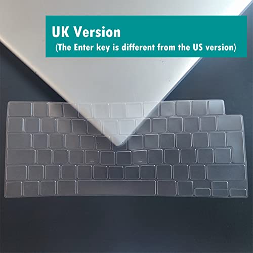 Pacchetto 2 in 1: custodia rigida in plastica, copertura per tastiera in TPU trasparente con layout UE (adatta solo per layout europeo, la differenza tra layout statunitense e layout europeo è il tasto Invio, il layout degli Stati Uniti entra la chiave è rettangolare, il layout europeo è "7")