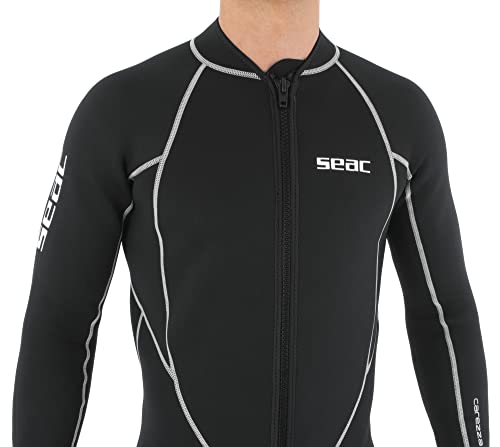 SEAC Carezza Man, Muta Lunga Monopezzo in Neoprene bifoderato da 2 mm, con Cerniera Anteriore e Protezioni in PU sulle Ginocchia Uomo, Nero, L