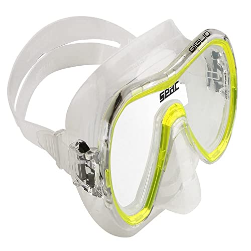 SEAC Giglio, Maschera Snorkeling e Immersione Subacquea Adulto Monolente, Taglia Regolare, Trasparente/Giallo