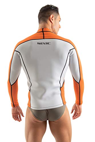 SEAC Fit Long, Maglia in Neoprene 2 mm a Maniche Lunghe, Ottima Come Sottomuta da Sub o Rash Guard da Surf e Nuoto Uomo, Bianco/Arancione, XXL