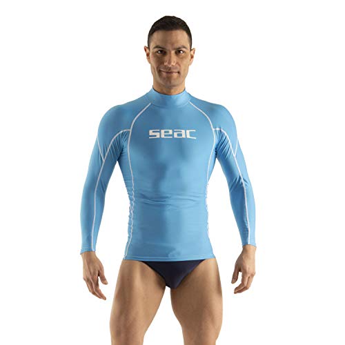 SEAC RAA Long Evo Uomo Maglia Protettiva Rash Guard per Snorkeling e Nuoto Anti UV, Azzurro, XXXL