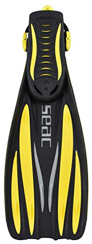 SEAC GP 100 S, Pinne da Subacquea Professionali Regolabili con Cinghiolo Elastico Sling Strap Unisex Adulto, Giallo, XS/S