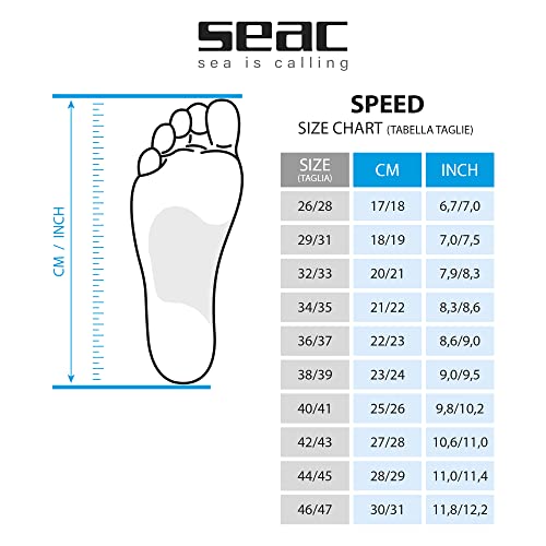 36 TAGLIE: le pinne da snorkeling Seac Speed sono prodotte in 10 taglie e calzano dal 26 al 47;