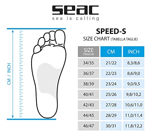 Dal 34 al 47 - le pinne da nuoto Seac speed-s sono disponibili in 7 modelli per calzare dal 34 al 47 e sono consigliate sia per i ragazzi sia per gli adulti
