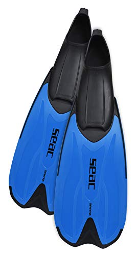 SEAC Spinta, Set Snorkeling con Pinne a Scarpetta Chiusa, Maschera Subacquea e Snorkel Anti Splash Unisex Adulto, Blu, 34/35 EU