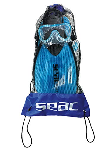 a seconda della taglia scelta, il set include una maschera subacquea da snorkeling Seac Giglio (39/41, 42/44, 45/47), Seac Giglio MD (36/38) o Seac Bella per bambini (32/35).