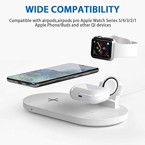Seacosmo Caricatore Wireless 3 in 1 per iWatch 5/4/3/2/1, Qi Supporto di Ricarica Wireless Docking Station per AirPods Samsung Buds, iPhone SE 2020/11/XR/X/8, Samsung Galaxy e telefoni Qi, Bianco