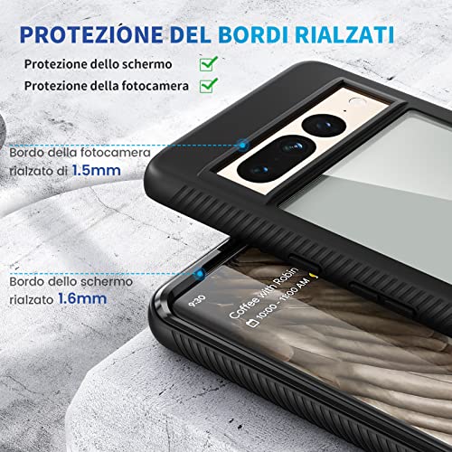 Seacosmo Cover Google Pixel 7 Pro, 360 Gradi con Protezione Integrata dello Schermo, Custodia Pixel 7 Pro Antiurto Rugged Trasparente Bumper Fronte Retro Case, Nero