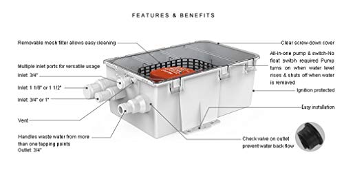 12 Volt, 47 LPM Kit di scarico automatico dell'acquazzone (12 Volt, 47 LPM Automatic Shower Drain Kit)