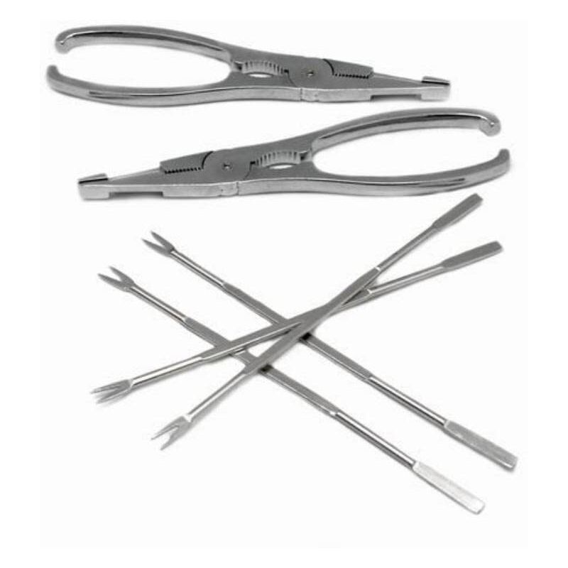 Set di utensili per frutti di mare, tra cui due Petardi e quattro Cracker. mangiare pesce diventa molto comodo e facile grazie a queste forti Cracker per aprire gusci, spiedini e per ottenere la carne di crostacei.