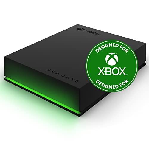 Seagate Game Drive for Xbox, 4TB, External Hard Drive Portable, USB 3.2 Gen 1, Black with built-in green LED bar, Xbox Certified, 2 year Rescue Services (STKX4000402)