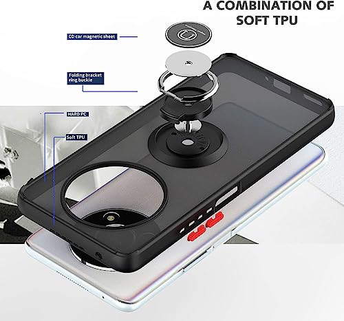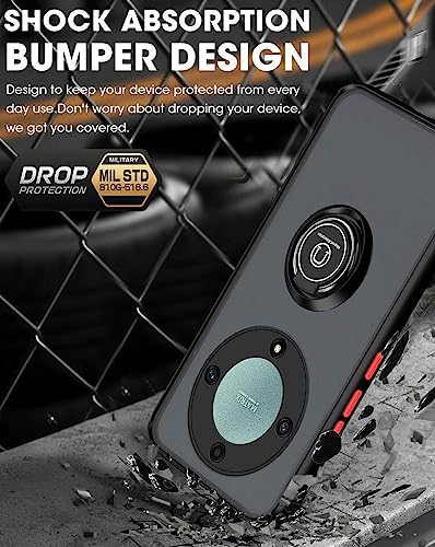 SEAHAI Cover per Honor Magic 5 Lite 5G (Magic5 Lite), Glassato Traslucido Dura PC Protettiva Custodia Silicone TPU Bumper Antiurto AntiGraffio Case con 360° Anello Supporto, Nero