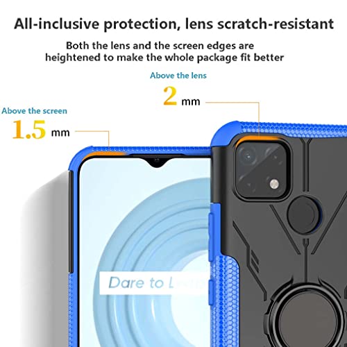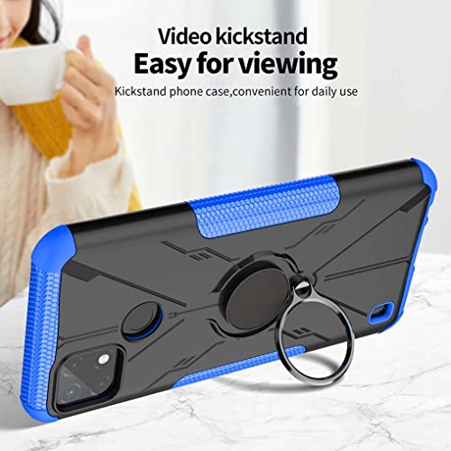 SEAHAI Cover per Realme C21Y / Realme C25Y, Antiurto Protezione Silicone con 360° Anello Supporto Kickstand Rugged Custodia TPU Bumper Case - Blu