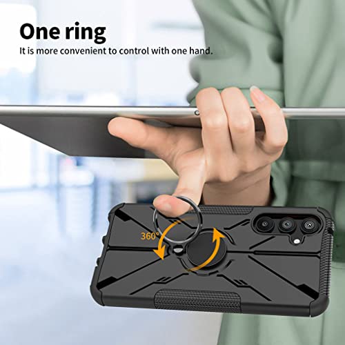 SEAHAI Cover per Samsung Galaxy A34 5G, Antiurto Protezione Silicone con 360° Anello Supporto Kickstand Rugged Custodia PC + TPU Bumper Case - Nero