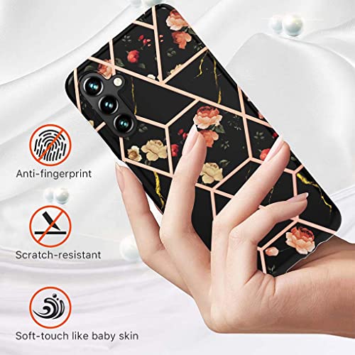 SEAHAI Cover per Samsung Galaxy A14 4G, Custodia Protettiva Ultra Sottile ed Elegante in Silicone TPU Flessibile, Glitter Marmo Cover Antiurto - fiore nero