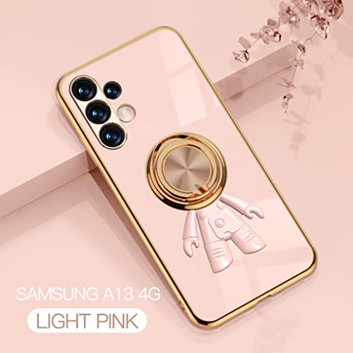 SEAHAI Cover per Samsung Galaxy A13 4G, Custodia Ultra Sottile ed Elegante in Silicone TPU, Placcatura Astronauta Design Cover Antiurto Case con 360° Anello Supporto, Rosa