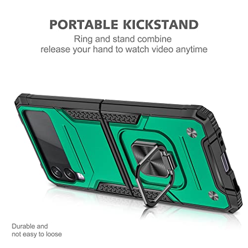 SEAHAI Cover per Samsung Galaxy Z Flip 3, Antiurto Protezione Silicone con 360° Anello Supporto Kickstand Rugged Custodia TPU Bumper Case per Samsung Galaxy Z Flip 3 - Verde Scuro