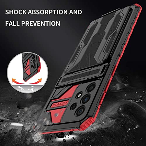 SEAHAI Cover per Samsung Galaxy A33 5G, [Militare Anti-Caduta] PC + TPU Silicone Morbido Ultra Sottile Custodia, con Supporto Pieghevole Kickstand e Nascosto Schede Slot - Rosso