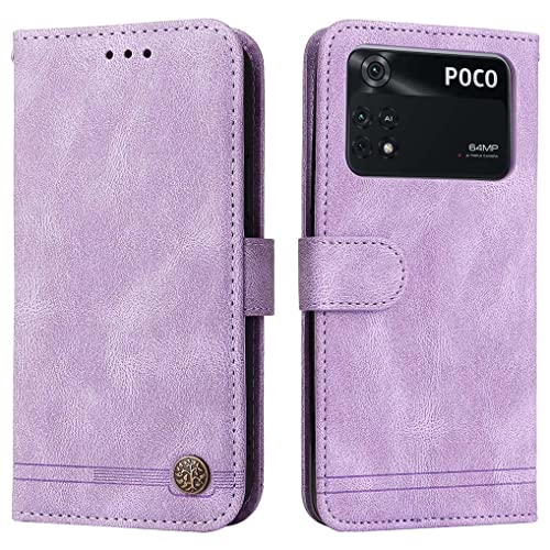 SEAHAI Cover per Xiaomi Poco M4 PRO 4G, Ultra Sottile Custodia Premium Pelle Portafoglio Kickstand Slot per Schede [RFID Blocking] TPU Antiurto Flip Cover Libro - Porpora
