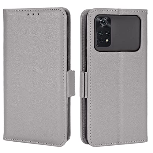 SEAHAI Cover per Xiaomi Poco M4 PRO 4G, Ultra Sottile Custodia Premium Pelle Portafoglio Kickstand Slot per Schede [RFID Blocking] TPU Antiurto Flip Cover Libro - Grigio