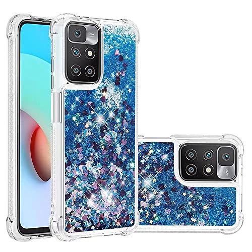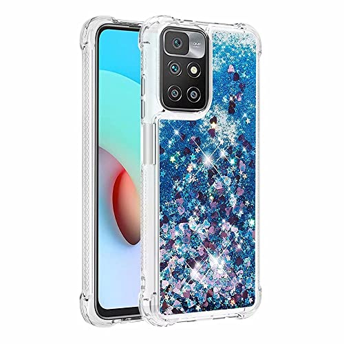 SEAHAI Cover per Xiaomi Redmi 10 / Redmi 10 2022, Custodia in Liquido Quicksand con Brillantini, Trasparente Silicone Morbido Ultra Sottile TPU Antiurto Case, Blu