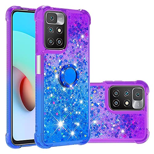 SEAHAI Cover per Xiaomi Redmi 10 / Redmi 10 2022, Custodia in Liquido Quicksand con Brillantini, Silicone Morbido Ultra Sottile TPU Antiurto Case con 360° Anello Supporto, Viola/Blu