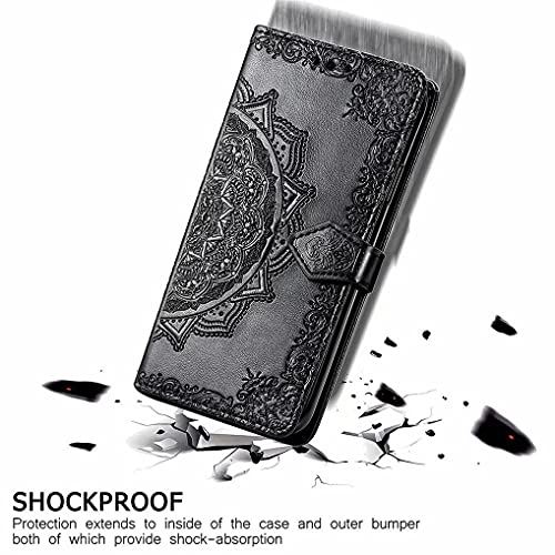 SEAHAI Pelle Cover per Huawei Nova 8i / Honor 50 Lite, Elegante Motivo a Mandala Design Flip Custodia in PU Premium Portafoglio, Antiurto Case Cover con Funzione Stand/Slot per Schede - Nero