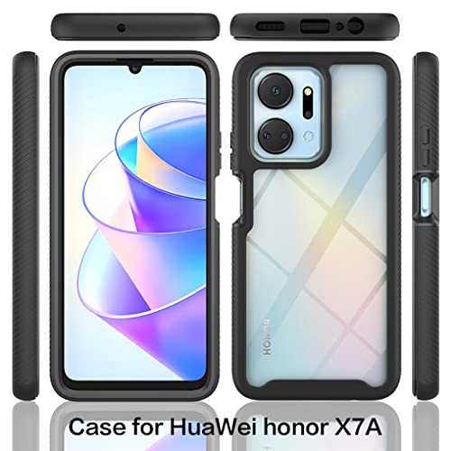 SEAHAI Trasparente Cover per Honor X7a, [Protezione Schermo Integrata] Rugged Custodia Full Body Antiurto Rigida PC + TPU Sottile Bumper Silicone Case - Nero