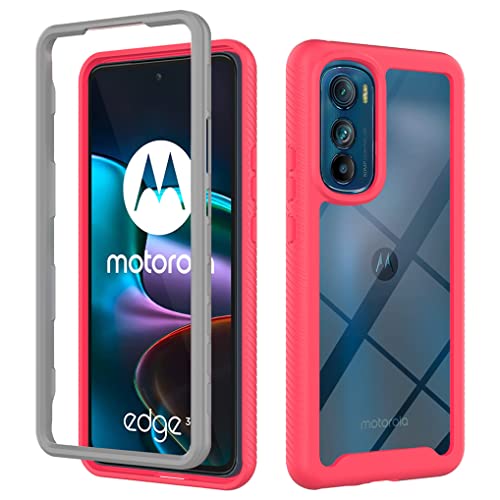 SEAHAI Trasparente Cover per Motorola Edge 30, Rugged Custodia Full Body Antiurto Rigida PC Soft TPU Sottile Bumper Silicone Protettiva Case - Rosso Chiaro