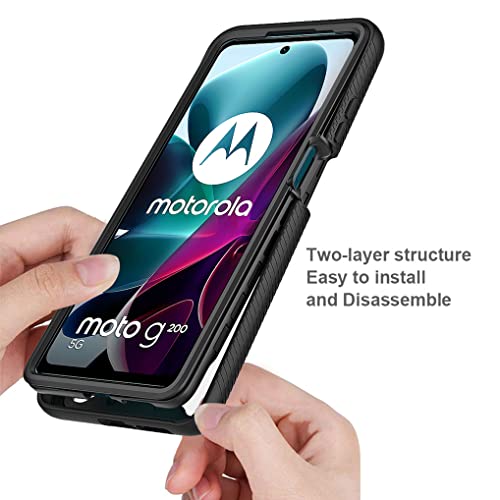 SEAHAI Trasparente Cover per Motorola Moto G200 5G, Rugged Custodia Full Body Antiurto Rigida PC Soft TPU Sottile Bumper Silicone Protettiva Case per Motorola Moto G200 5G - Nero