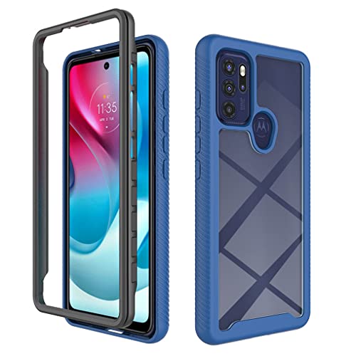 SEAHAI Trasparente Cover per Motorola Moto G60s, Rugged Custodia Full Body Antiurto Rigida PC Soft TPU Sottile Bumper Silicone Protettiva Case per Motorola Moto G60s - Blu Scuro